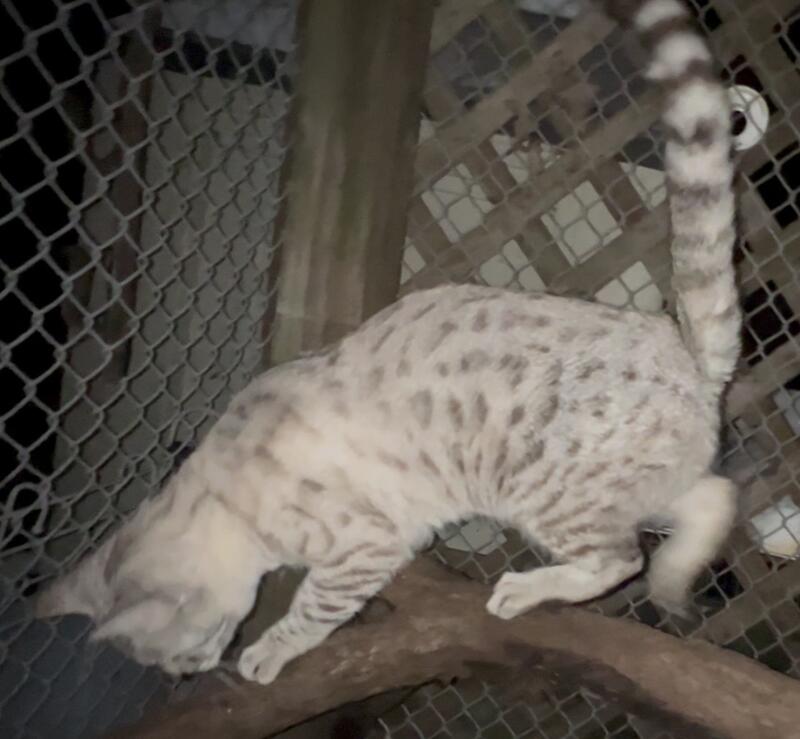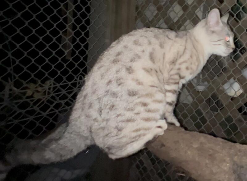 message bgbcats about this ad TICA registered 1 3/4 years old, bred once. Father (rosette spotted silver) and mother (melanistic spotted Bengal carries the cashmere gene) pictured on the ad. This cat loves to be handled, would be a good breeder for diversity in kittens. Asking $2500 OBO. |