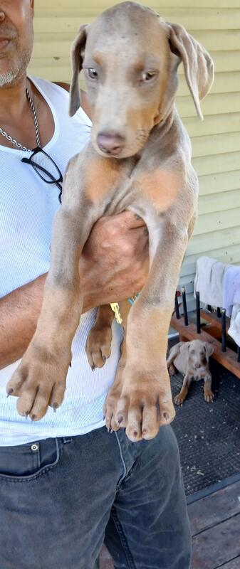 message chnllc8301 about this ad female fawns available very rare colors they were born 06/30/25 will be ready when there 8 weeks they will come with shot and dewormed record. Tails have been doxxed and their full registered. if interested message me 910-527-9469. Thanks have a blessed message for rehoming fee day. Father is the red doberman mother is the blue doberman price negotiable |