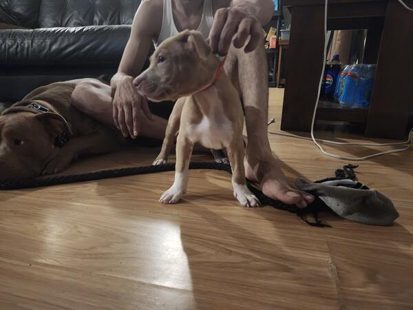 message thorandfreya about this ad High quality Amarican pitbull terrier with great temperament wonderful for families easily trainable dogs, extremely loyal, great characteristics from both parents creating the perfect balance of fierceness and sweetness for both intruders and family. Looking to rehome immediately, not asking for much make me an offer and only catch is prove to me your a good home for the puppy. |