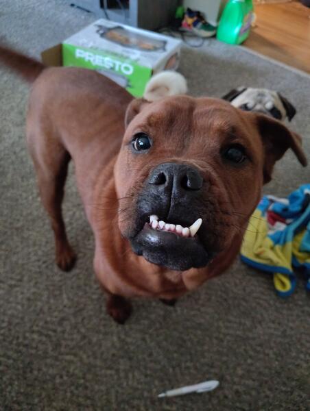 message mndch9491 about this ad She was born 10/31/2022, she is good with kids does good with my cats, she does like to chase them, however if you set boundaries with them she is perfectly fine. She does good with my young children however I suggest a home with older kids as she can be careless. Id highly suggest a fenced in yard for her, as her leash manners are not the greatest. She is wonderfully housebroken. She is also fixed, she is not utd on her shots, she needs them. She is crate trained. If you have questions about her before committing please do so. Its just to much for me going up and down stairs. I am very pregnant, but she is a lot to handle, this is why I strongly suggest a fenced in yard. If you are serious please text me at 317 538 3095 |