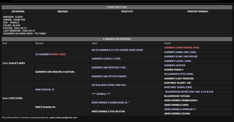 Female Pitbull. Blackrocks/Aries Lines -- 800