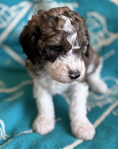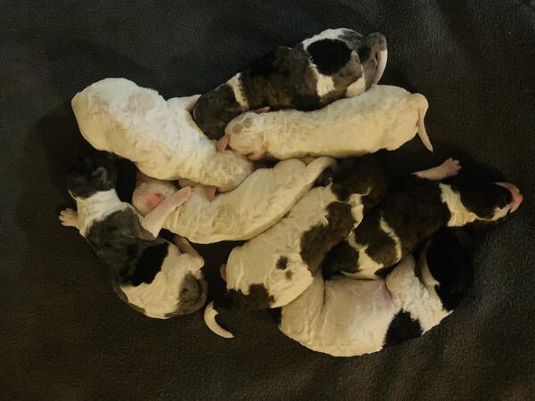 message mctxgr2748 about this ad Chili is an AKC brindle parti male. Look at the pictures of his dads brindle markings hes going to be beautiful There are three boys in the litter along with five females and they are all very close and sweet just like their momma who loves my daughter like crazy. They still cuddle up in a big bundle when they sleep but love to play fight with each other as well. They will be UTD on all shot and wormer dewclaws removed and tail docked. We are working on potty training. Have been around young children and teenagers. Poodles are the second smartest dog breed hypoallergenic dont shed love people and easy to train. Mom is an AKC small standard merle parti who is 45lbs. Her Embark 100% clear genetics/health testing link- Dad is an AKC standard brindle parti who is 55lbs. His Embark 100% clear genetics/health testing link- Please dont hesitate to call text facetime ask to see videos etc. My number is 540-287-0351. I am a teacher whos about to go back to teaching soon but I will get back to you quickly. message mctxgr2748 about this ad |