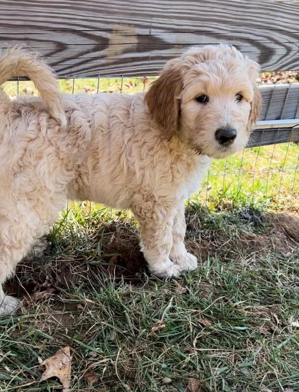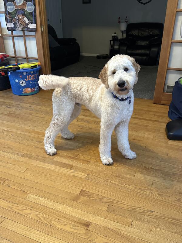 message jrrotts22 about this ad Champ He is half golden doodle and half labradoodle also known as a Double Doodle. He has a soft loose curl coat that is non-shed. He has an English cream coat with reddish ears. He has a great athletic body that he shows off in high jumps and his super speed thanks to his strong legs and deep chest. He has the best temperament which can be displayed around children, in loud environments or with his off switch on the couch. DNA health tested and can be matched with females genetic to check color, size type. If you are looking to add great structure, temperament, muscle and coat to your next breeding contact me at 732-535-3594. Willing to do cash or pup back deals. |