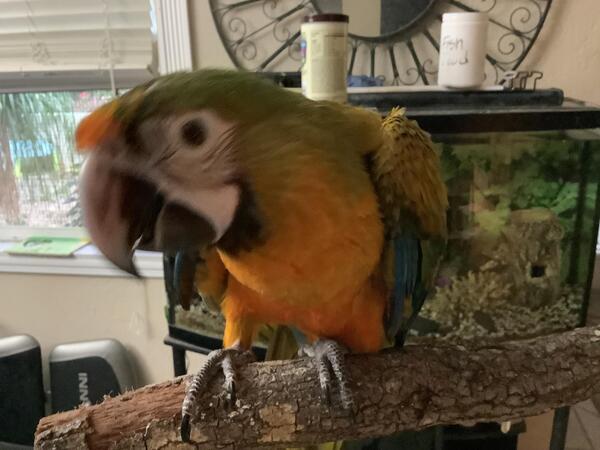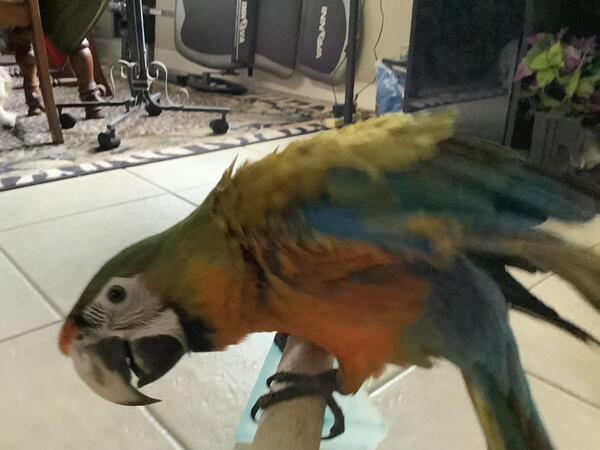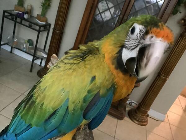 message birdybaby about this ad This is a 2nd generation baby.hes very gentle and loving. He steps up and is perched trained. He is 7 months and loves to be handled and is starting to talk when he wants too! |