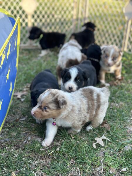 message farmmom2006 about this ad They are vet checked at 7 weeks 2 rounds of puppy shots. Bordetella vaccine given and worming starting 2 weeks and given weekly. Treated for Giardia and coccidia as well. Contact me at +1-270-734-3118 for more information. To hold a pup deposit is required. Puppy visits are allowed until pick up. We currently have Merles, & tris available. Male and female. We have AKC registered puppies and also have a pet only unregistered able litter as well. |