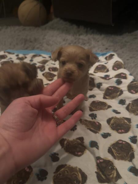 message chihuahualover7 about this ad This little guy was born on Feb 12th and will be long hair more than likely. I have been breeding chihuahuas for the past 12 years. Its very important to me that the puppies go to a loving home and that are not used for fighting. I do own both mom and dad of this litter. Mom is apple head & dad is deer head. The puppy will have its first set of shots, be dewormed, come with a blanket (with our home scent) to help them settle easier in their new home. I also will give u shot record. We do administer shots ourselves. Also I will send home a note card with time of birth , weight, first bath, what puppy eats food wise ect. A deposit of half down will be required in order to reserve your puppy. I will meet you in person under in a public place with camera surveillance for your safety and mine. Location of meeting place will be determined but will be in defiance Ohio. You will be able to see the puppy and place your down payment . Remainder will be due at pick up time which will be 8 weeks approximately the weekend of April 11. I will give you a receipt for your records and can give you reference of people who have been a returning customer of mine. Please do not waste your time or mine by trying to scam me. I have delt with many scams and I refuse to deal with them. If you have any further questions please feel free to contact me at 419-399-0703 thanks message chihuahualover7 about this ad |