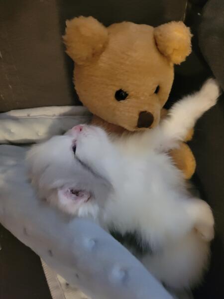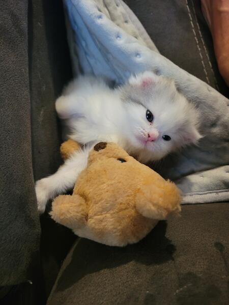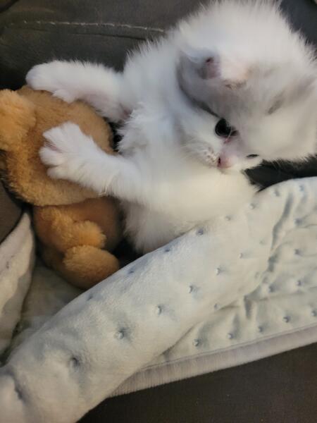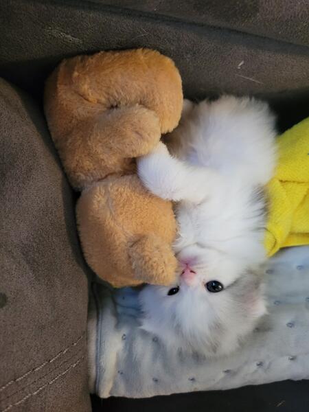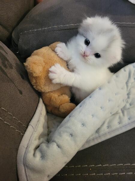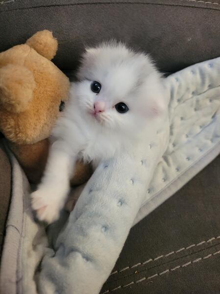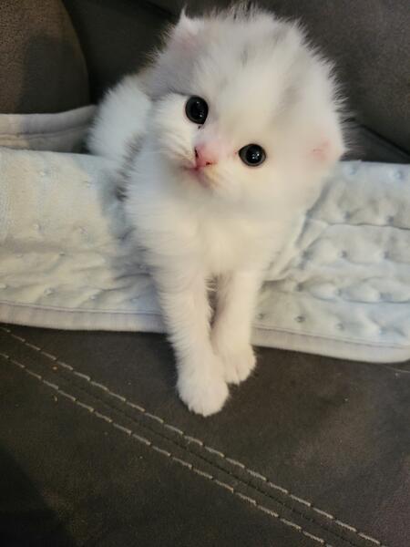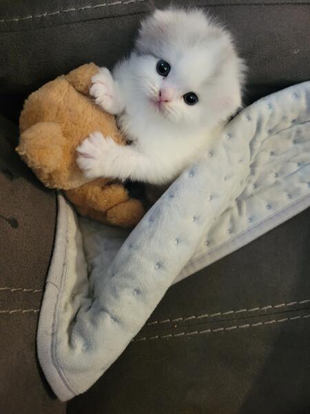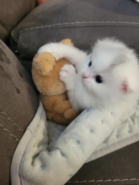 message april41 about this ad This baby Is 4 months old and a perfect Christmas gift! She is so sweet no ears the cutest thing ever. Her mother is a munchkin, but she has long legs.The father is scottish fold persian. 4192966004 |