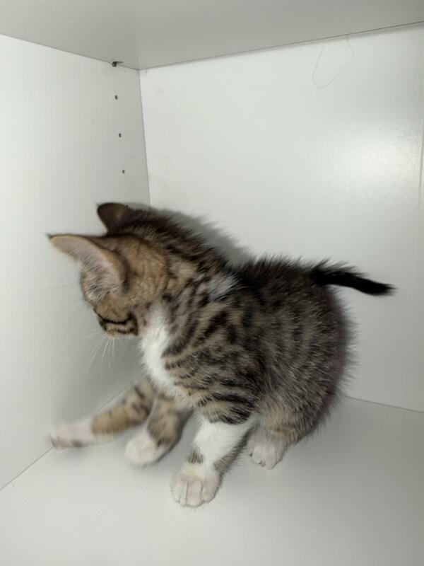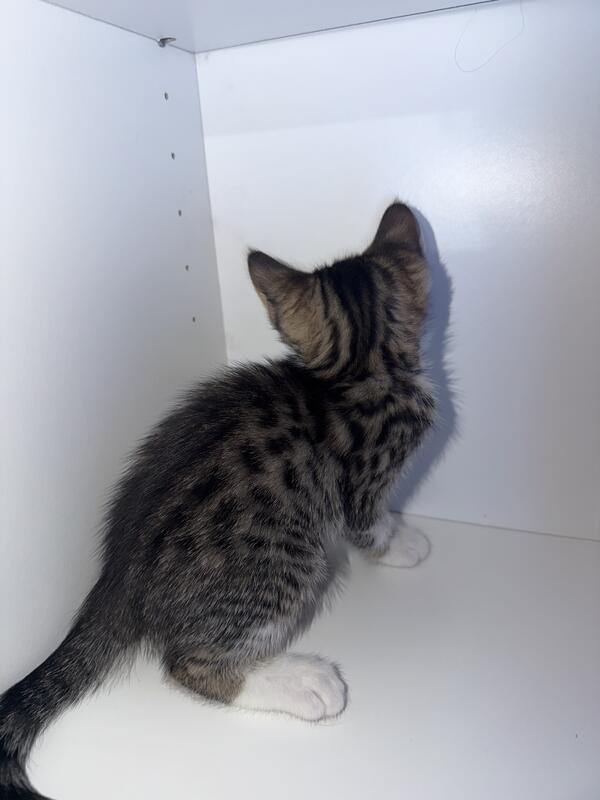 This is an 8 Week old female half bengal kitten. The mother is a pure Bengal and the father is an American short hair.