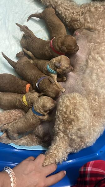 message toyypoodle about this ad DOB 6/06/2025 Fort Lauderdale 5 girls and 3 boys These are micro goldendoodle. Dad is 4 lbs and mom 18 lbs they should be only 10-12 lbs max adult weight. Dad throws teacup red poodles |