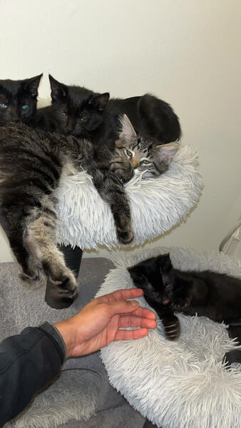 message babycayy about this ad 3 Kittens for sale. The mother is a Siamese cat, and she was impregnated by a black cat. Oddly enough she only had all black babys (with small white hairs here and there) no white, no striped ones nothing. Lol they are so adorable, and fun! They really bring live life the house, its never a dull moment with the kittens around! $100 OBO |