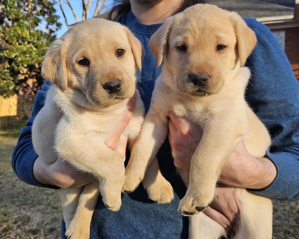 message gpatton9 about this ad AKC-Registered Labrador Retriever Puppies, Champion Bloodline We have a beautiful litter of AKC-registered Labrador Retriever puppies ready for their forever homes soon! Both Dam (black, champion bloodline) and Sire (chocolate male) are on-site, come meet the parents! Puppy Details: Age: 6 weeks old, now accepting reservations Pickup Date: April 9, 2025 Health: shots and dewormed Registration: Limited AKC Registration Rehoming Fee: $900 Available Puppies: 2 Yellow Labs (1 Male, 1 Female 3 Chocolate Females (Note: 2 Black puppies are already reserved) These pups are raised in a loving, hands-on environment and are well-socialized with people and other pets. Whether youre looking for a loyal family companion, a hunting partner, or a future show prospect, these puppies have excellent temperaments and top-tier bloodlines. Located in: Evans, GA |