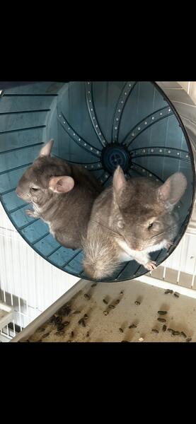 message joejeffries9 about this ad I have three chinchillas all under 1 year old and female. One dark grey/black and two off white colored. I am looking to get $150 per chinchilla and $800 total for the pets and their whole set up. |