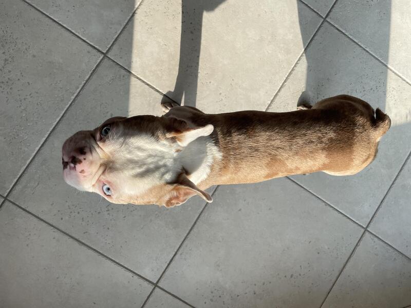 message mcksbnvpaes about this ad Very rare. This is a healthy 5 year old male with a perfect temperament that will make an excellent candidate for a Boston, Frenchie, Frenchton, Pug, or Bug. He features ice blue eyes and when the sun hits him a pink hue. He has a Merle pattern that is perfect. He will throw designer unique puppies that can generate strong revenue. Feel free to contact me with any proposition where everyone is happy and we can bring magical dogs into the world. The price is just a placeholder. |