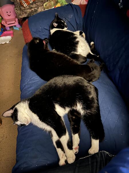 message pickles15 about this ad I have 3 adult cats that are free to a good home. They are great mousers. They are inside/outside cats. 1- blk&wht Male- neutered - will be 2 years old on June 4. Has the black spot on chin. His name is Barnaby or Barns 1 - blk&wht Female - spayed- will be 2 years old on June 4. Her name is Sugar. 1 - black Female - 10 years old. Was a barn cat the first 7 years and has been in house for the last 3 years. She has missing teeth. Her name is Shadow. |
