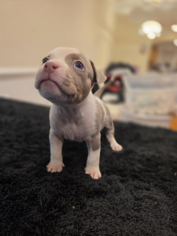 message kennelcnc about this ad Tri Lilac American Bully Puppies $600 Rehoming Fee Keeping Puppies under $1000 for the Holidays its been a rough year! Looking for the perfect addition to your family? These beautiful Tri Lilac American Bully puppies are ready for their forever homes! They have amazing structure, great temperaments, and stunning color that really stands out. Puppy Details: Breed: American Bully Color: Tri Lilac Age: (9weeks) Gender: ( males/females) Rehoming Fee: $850 Location: (Maryland) About the Puppies: These pups were raised with lots of love and care. Theyre socialized around kids and other pets, healthy, playful, and already showing that classic Bully confidence and sweetness. Parents have excellent temperaments, and the puppies are expected to mature with great structure and thickness. What They Come With: First set of shots Dewormed Health check Starter food (optional) If youre looking for a loyal, friendly, and one-of-a-kind companion, these Tri Lilac Bullies are the perfect fit. Serious inquiries only. Message me for more pictures, videos, or to come meet them! message kennelcnc about this ad |