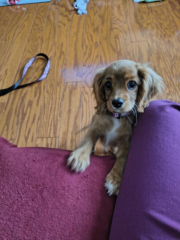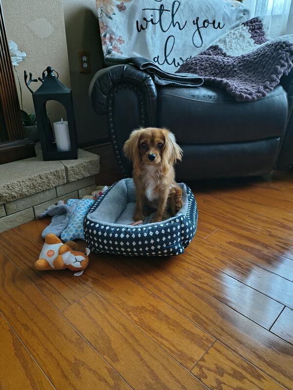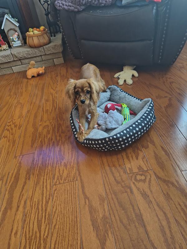 message trcpt2095 about this ad Approximately 8 months old cavalier. She is not spayed. She had all shots up to date at 8 weeks. Last vet checked November. She loves to play outside. She is a sweet girl who needs someone to spend more time with. She does not like to be alone. She rarely barks but when she does it's the cutest cavalier howl. She can sit when promoted with a treat and will walk around your body then sit for a treat. She is just adorable Last photo from toda |