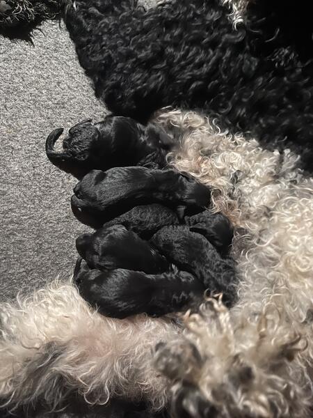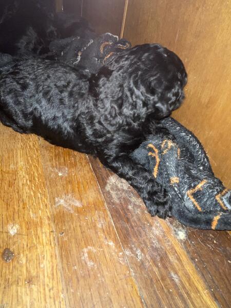 message dogmommajae about this ad Edit* PUPPIES ARE HERE 7 puppies today. (Christmas Eve puppies) 6 females and 1 male. So far they all look to be solid black, (a couple have white on their chest so far) but only time will tell. Puppies will soon be here. Dam is a gorgeous Standard Party Poodle and Sire is a gorgeous Standard Goldendoodle. Both of the parents are so intelligent. They both were taught commands and learned within minutes of being taught. Both are excellent with kids and they love their families so much. The mother is my daughters big baby and the dad is mine and my younger daughters big baby. Both have been raised around children and are amazing with children of all ages. We cant wait to see what colors will arrive. Puppies are due Christmas Day or close to that day. No holds without deposits. Will write a contract for all payments received. 260-312-8795 Jessica (If you do not trust leaving a deposit, I do understand. We can work something out if you are absolutely certain that you are interested) All pups with be dewormed and vet checked with their first set of shots and will be ready to go around Valentines Day. They are three weeks old now. 2 females left! message dogmommajae about this ad |