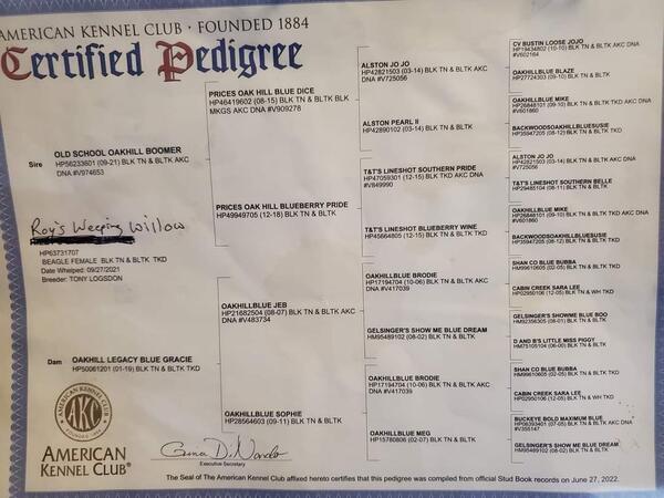 Pedigree attached.