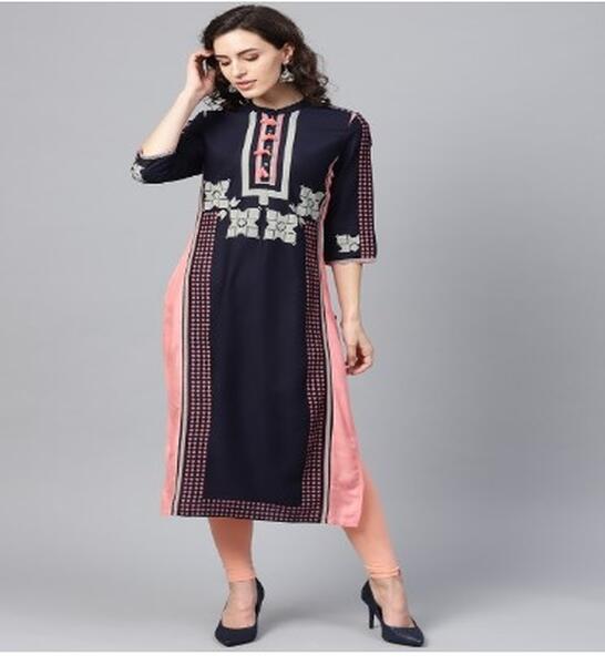 message rohinee about this ad Product Code: 9626023 Navy Blue and pink printed straight kurta, has a mandarin collar, three-quarter sleeves, straight hem, side slits The model (height 5'8 is wearing a size S You'll love the elegant design and fit of this stunning kurta from W. For your next dinner party or family gathering, this piece pairs well with dark leggings and chic flats. Viscose Rayon Hand-wash httpsmyntr.it/eO2rydF |