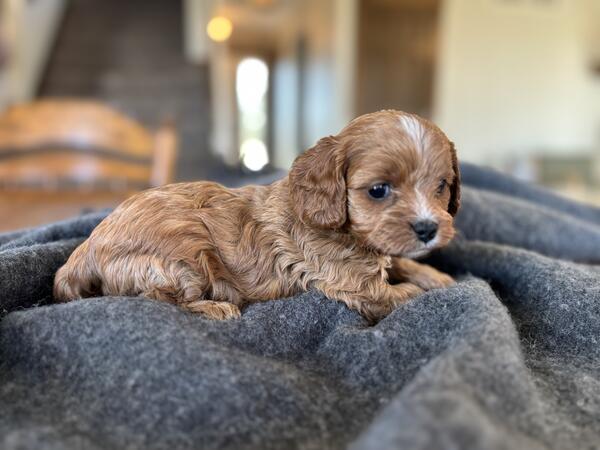 message shawnleman about this ad Raya is a cute little Cavapoo. Her mom is a 13lb AKC King Charles Cavalier and her dad is a 20lb AKC Miniature Poodle. She loves to be held. She will come up to date on dewormer, shots, a blanket from mom, and a bag of puppy chow. Located in Craigville, IN. Rehoming fee of $1000. Can reserve with $200 down payment. He will be ready at 8wks old on Dec 13th. Call or text Kara at 260-273-9246. |
