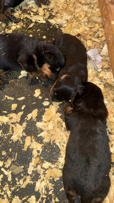 message bellantoniale about this ad Pictures were taken at 12 days old of the puppies. One photo is of the dad These beautiful, adorable, full bred, champion bloodline German Rottweiler puppies will be available for their fur-ever home 2/7/26. 2 males and 5 females available. Born 12/13/25. dewclaws removed , puppies have their full tail 1st series of vaccinations, dewormings, when they are of age. Both parents are on site, and AKC registered. If interested or have any questions please call or text 9172143310 Puppy can be sold without AKC papers but will need to be spayed $1500 Or the puppy can be AKC registered and come with registration and pedigree (family tree/lineage) papers $2500 Mom is 100 LB and Dad is 125 LB. All puppies being raised around, handled, and socialized with our children. |