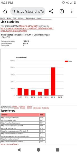 message cldbz664 about this ad Do you have your music on a website or Spotify? I can easily set you up to recieve 1 Million visitors to help your talent reach more potential fans. Takes an estimate of ten days to complete but sometimes can take a little while longer. If this interest you please contact me. the attached pictures show an artist bandcamp and spotify and link statistics for orders of 100K. |