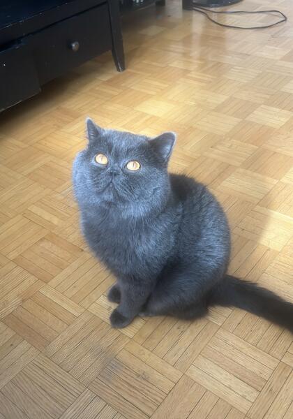 message osman about this ad For Rehoming Incredible British Shorthair Male intact (uncastrated male cat capable of procreation) Age: 4 years | Color: Dark Grey with Striking Orange Eyes A well-mannered, very clean doesnt spray , and non-aggressive intact male British Shorthair . He is strong, gentle, and in excellent health. Fully litter trained and ready to move to a loving new home. contact osmanahmeddin1@gmail.com location Toronto |