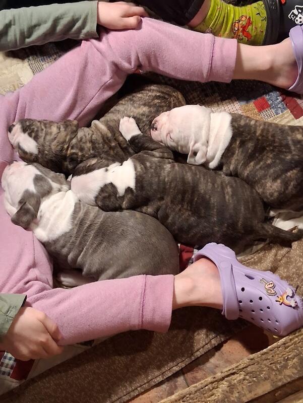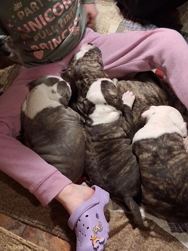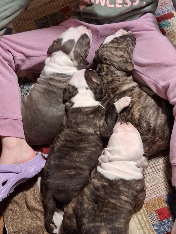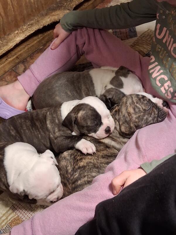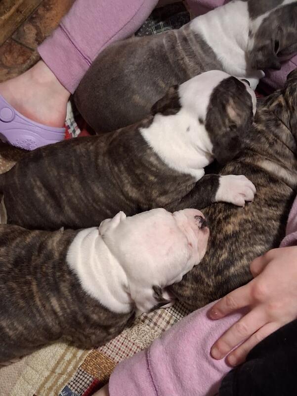 message blldgsr4675 about this ad Puppies are growing and becoming real love bugs! Just turned 5 weeks old. NKC registered. 3 males and 1 female. They will be wormed and have their 1st shots before going to their new homes. Please call or text for more info. Don't miss out on these gorgeous puppies. 217-320-1842. Winchester, IL |