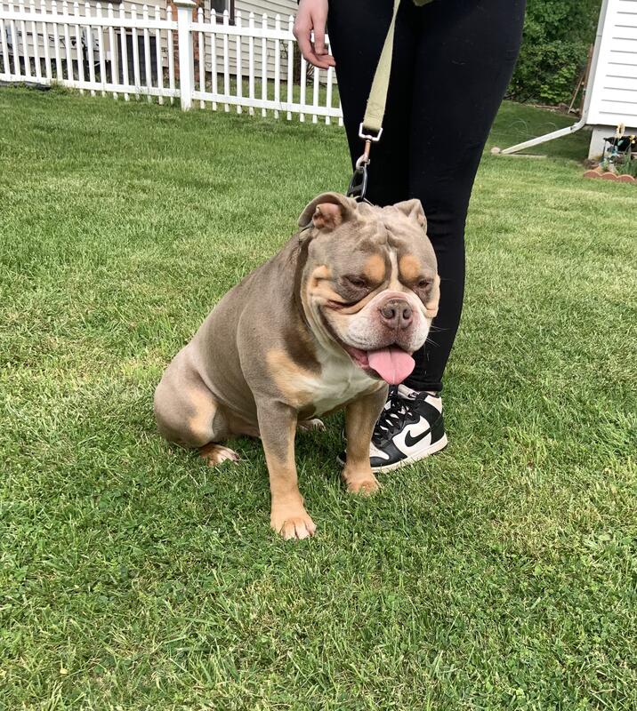 message frdmhw4239 about this ad We have a 4 year old olde English boy named Jabba who we are studding out. His first litter ever dropped an 11 piece. Hes a lilac tri color has a very nice temperament good with all dogs and people. We matched him up with our girl Bella which is a blue tri and they ended up having all blue and lilac pups some even mixed! If interested please contact us on here or at 5173583893 thanks. (stud service onlynot for sale location Jackson mi |