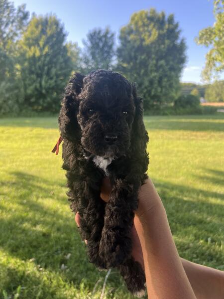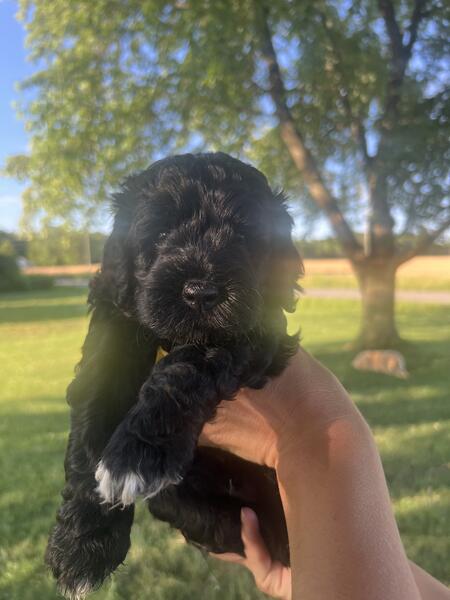 message dkoetje19 about this ad 3 tuxedo miniature Goldendoodles available. 2 males and one female. Parents are health certified. Pups are vet checked, vaccinated, well socialized, and have received initial house training. They are approximately 85% poodle and 15% golden retriever, meaning they will have a nice, allergy friendly coat. Pups are expected to be 30lbs when fully grown. Ready to go home July 19 |