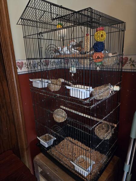12 zebra finches. 1-2 years old. Includes cage and content.