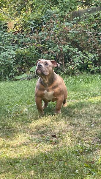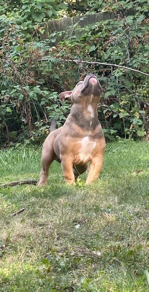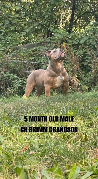 message atinez218 about this ad 5 Month Old Male CH Brimm Grandson Abkc reg. This boy is clean across the board! Perfect bite, straight topline, great angulation, nice tight feet, great stance he has good bone/ mass good structure, just an all around very well put together dog and just gonna continue to get better! Weve been calling him Fame but dont miss out on the opportunity to call him yours! Message for anymore details parents and pedigree included in pictures |