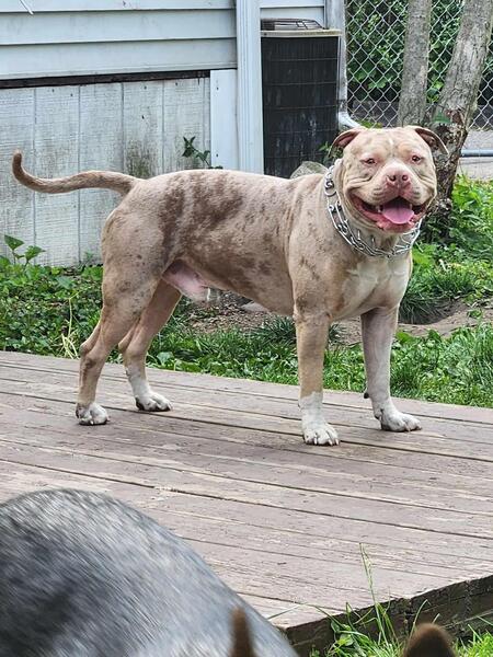 message paws03 about this ad Grandson of 2xgrch Odysseus, correct and clean. Standard height of 19 atw and 22 inch head. He has a classic build and great temperament. Hes 3 and open right now at a 800 in full if come here or 1000 to 1200 depending on distance if i have to travel. Semen collection and shipping are added charges to you. That would be the 800 stud fee and that added cost. A pup back deal is also available. ABKC registered. |