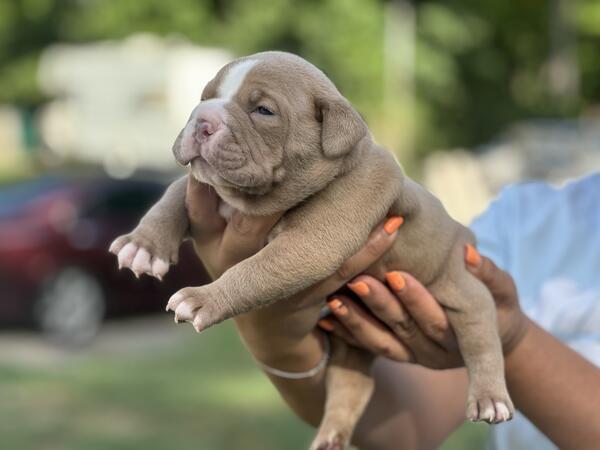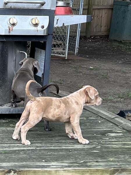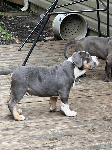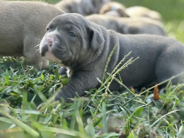message lscshh0542 about this ad I have a male pocket bully for stud service he has a great temperament a very nice dog he is AKC registered and UKC he just produced a litter these puppies are three weeks old the second set of pics are puppies he just produced the bigger puppy is 9 months old now from his first litter. |