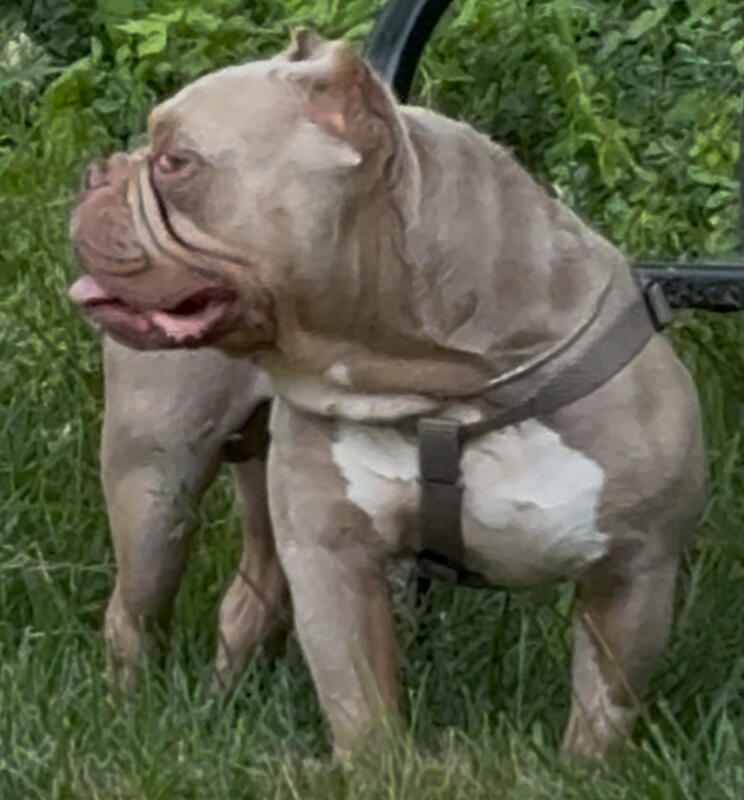 message exoticamerican7 about this ad The original Merle bully HAKA. Grandson ABKC Registered papers in hand Lilac Ghost Tri color Pocket American bully 13.5 at the withers 500dp Dm for questions Sale/trade/stud/pup back ect. ALL ARE WELCOME |