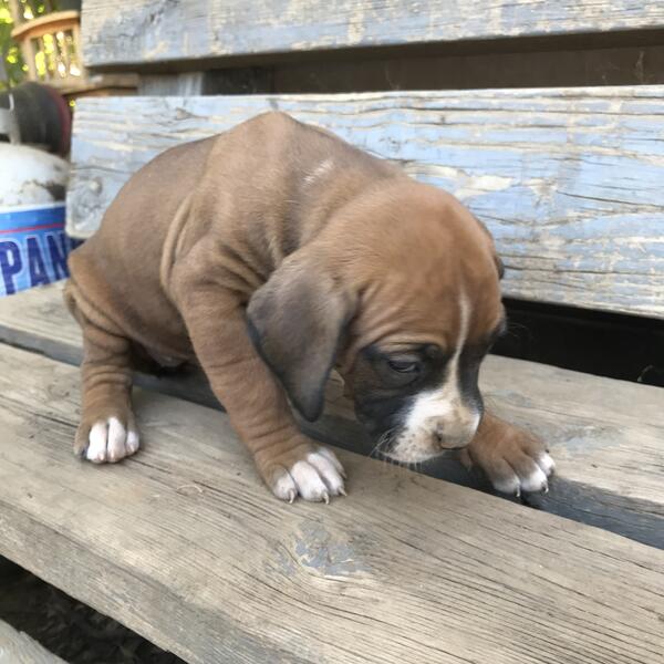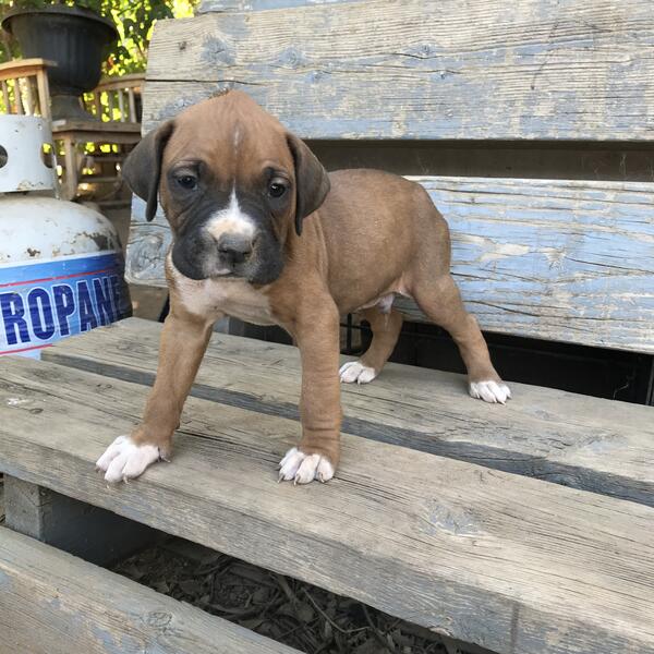 message mrsceballos about this ad Hello I have six puppies for sale out of those six only 2 are males. The mom is a boxer/Pitbull mix and the dad a boxer. Please contact me @ (559) 920-7392 if interest. Im located in porterville ca. all puppies have their tails docked and will be dewormed. They were born on August 24-25. Looking for loving homes and asking $200. You can also get hold of me through gmail @ceballosmarlene7@gmail.com |