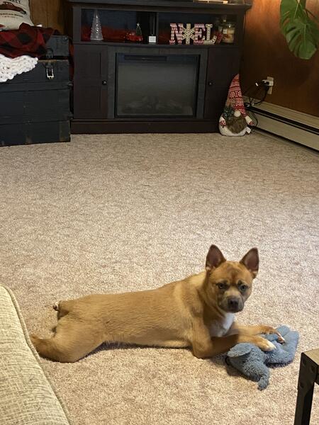 message lcthr5904 about this ad 1 yr old Pomeranian/Frenchie mix looking for a loving home. Good with other pets and children. Neutered. Approx 25 pounds. Wont get much bigger, if any. |
