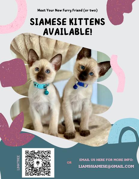 message lmssm5465 about this ad Pure bred Siamese kittens with bubbly friendly personalities. Adorable, vocal, affectionate. Pure bred champion quality kittens, we are certified through the TCA and offer only the best quality kittens to your loving home. Portland Oregon LiamsSiameseCattery.com |