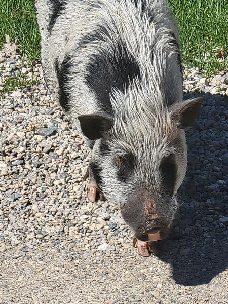 3 years old. Good boy. My female decided she doesn't like him he is neutered. Stays on my property.