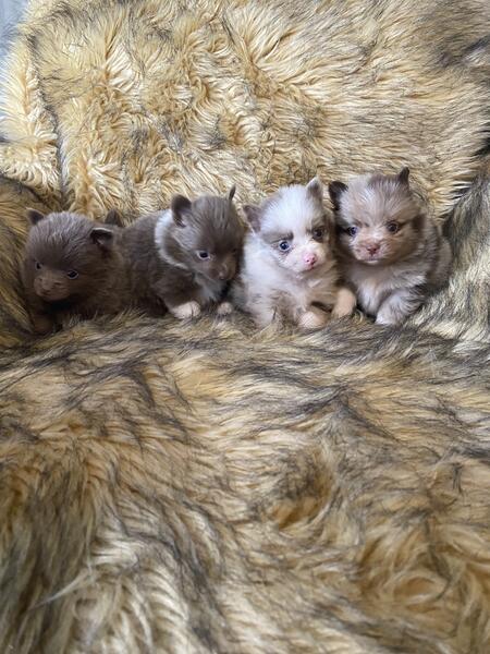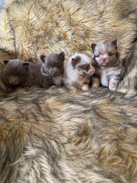 message mw2019 about this ad Birthday Oct 14th 2025. Akc reg. Beautiful colors chocolates and Merles some possible tri color will know as they get older . They should mature anywhere from 4 to 7 pounds. Will be vet checked and updated on age-appropriate shots and worming when they go home( 8 weeks of age) estimate December 9 th depending on eating habits. Males and females prices range from $900-1500 depending on Puppy and if limited or full AKC breeding rights. $250 nonrefundable deposit to hold Puppy of your choice till ready to go home. Text is best 9373085972 |