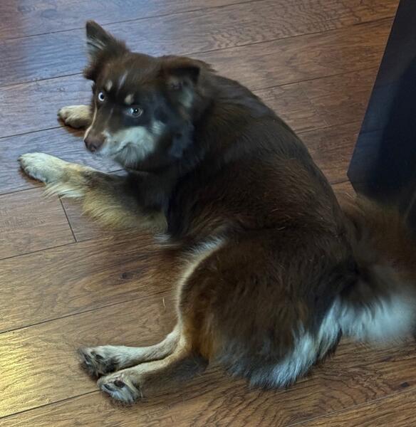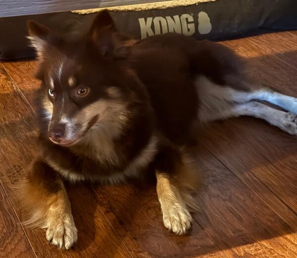 2 year old female pomsky. Crate/house trained, leash trained, very friendly with everyone and other dogs.