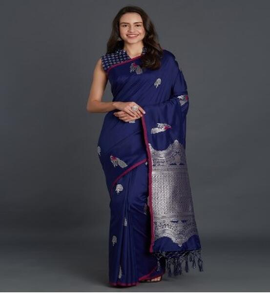 message prerana about this ad Product Code: 7715819 Design Detail: Navy Blue kanjeevaram solid saree, has a woven design border Blouse Piece The model is wearing a blouse from our stylists collection, see the image for a mock-up of what the actual blouse would look like Origin: Kanjeevaram sarees are made in the Kanchipuram region in Tamil Nadu. The fabric bears the images of all the scriptures embossed on the walls of the temples of the Kanchipuram village. Fabric: Georgette is a lightweight fabric that displays an overall bouncy look. It is sheer and comes in both translucent and opaque textures. Length: 5.5 metres plus 0.8 metre blouse piece Width: 1.06 metres (approx) Feel stunning in this traditional saree from Mitera. This navy blue design can be paired with an elegant pair of heels and minimalistic silver jewellery for your next family event. Saree fabric: silk blend Blouse fabric: silk blend Dry-clean httpsmyntr.it/Ajj6JZl message prerana about this ad |