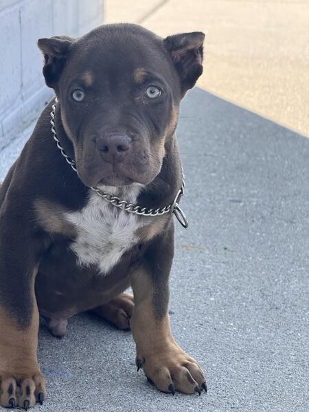 message m3bullies about this ad I have 3 xl American bullies available. One is a lilac tri Merle female. The other is a chocolate tri male and a chocolate tri female. They are abkc registered with a great bloodline. They will come with shots deworming and ear cropping if you want that. |