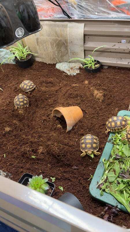message cmffttg9304 about this ad 18 month old Sulcata tortoises. These are well established babies. Shells are 3-6 inches. They are past the delicate stage and all are eating great and growing well. They have little to no pyramiding on their shells. These are well loved and socialized. Primarily eating hay, either Timothy or Orchard grass. |