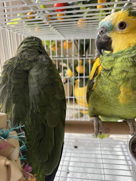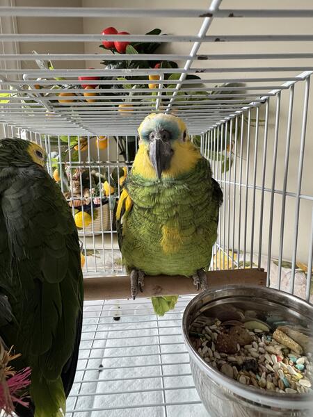 message canary101 about this ad Selling both my blue fronted amazons, both are approximately 10 years old. Neither of them are really hand friendly. Although one will occasionally come out and let you near him. They get a seed and pellet based diet, both of them talk and sing, serious inquiries only. If the ad is up its still available! |