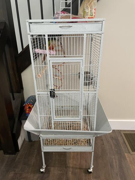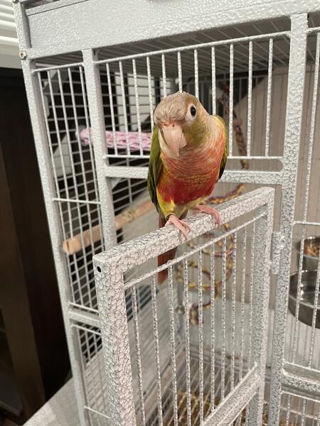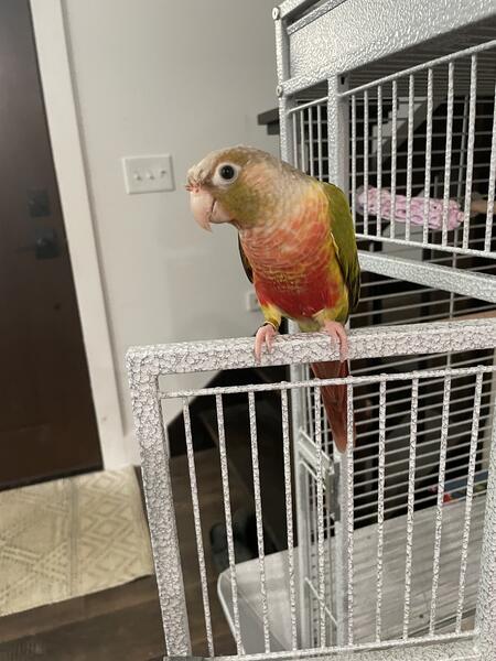 Well Loved Pineapple Conure. Very tamed loves to fly comes to with brand new cage