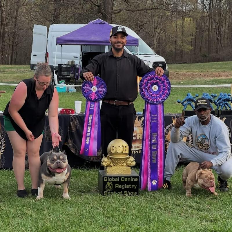 message jaimew93 about this ad ABKC Champion, ICBR GrCh, and GCR Ch Azari is open for stud. He is 15 3/4 at the withers and 93lbs. 25 1/2 inch head. He is a producer. Throws nice bone and head. He has a son that is a dual champion and a daughter that is also ICBR Ch now. Dont miss out on this boy. $2500 with a $750 lock in. Shipping semen is also available. Text me at 3364321670. Lets work. Pictures of productions upon request. |
