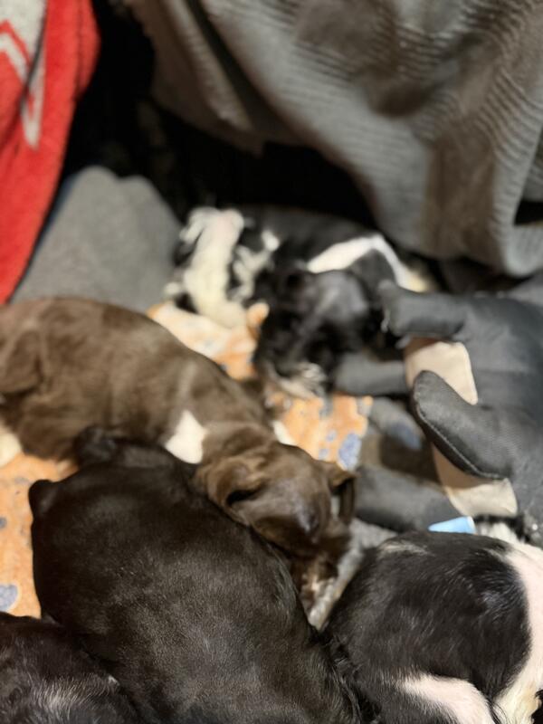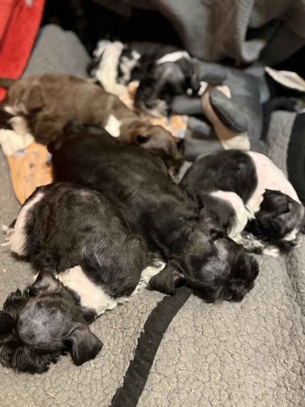 message schnauzermom about this ad Puppies will be ready for their new homes December 16th. Tails docked, dew claws removed. 1st shots and vet checked at 6 weeks. Puppies have been groomed once and are working on going outside to potty. 2 boys black and silver, 1 boy liver and silver and 1 girl black and silver. Mom is pepper and around 14lbs, dad is black and silver around 18lbs. Both parents are on the premises. |