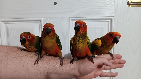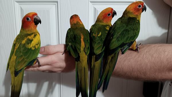 message handfedbirds about this ad Red Factor Sun Conure Babies Available for Deposit , All these found a new Home, More will be Weaned and ready in January 2026. ( Still being Handfed ) Will be weaned by January 15th 2026. will be Tame and People Friendly, Very sweet steps up and loves Head Scratches, Great Mellow Disposition Amazing Vibrant Colors . Conure's make Great Companion. ( Price is for each Comes with a free Cardboard Travel Carrier and food starter kit. ( Still being Handfed ) Will be weaned by the end of November Sun Conures make Great Pets but can Loud and are very entertaining sweet little Clowns, as well as awesome Companions, They do have Talking Capabilities and are in the parrot Family, Price is $777.00 each or 2 for $1200.00. We take pride in raising our babies to be very sweet and loving. all are on the best diets available all of our bird Breeders have been Disease Tested We have been breeding and raising loving pet now for 30 plus years and love and enjoy hand raising all of our babies. We also raise Lovebirds - Cockatiels, Indian Ringnecks, Green Cheek Conure, Turquoise, Violet Turquoise, yellow Side Violet Turquoise and Pineapple Violet Turquoise and Cinnamon Violet Turquoise Conures Normal, Yellow Sided, Cinnamon and Pineapple , Sun Cheek , Dilute and Sun Conures General Pricing I have seen them priced across the Internet Between $1200.00 to $2000.00 message handfedbirds about this ad |