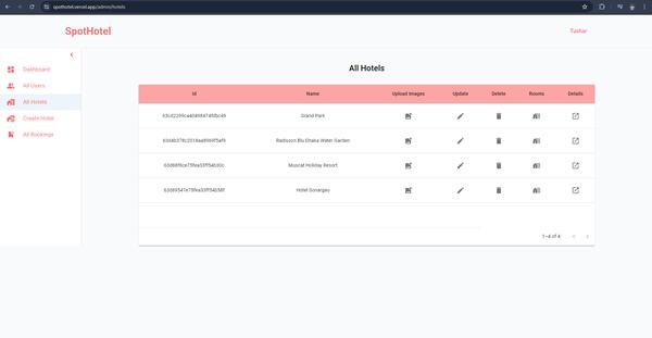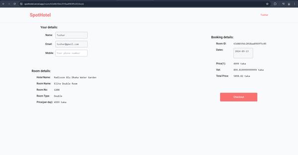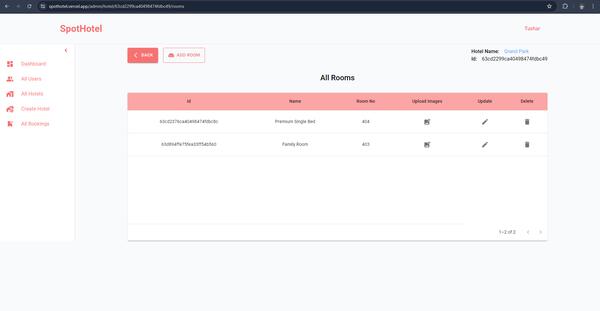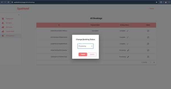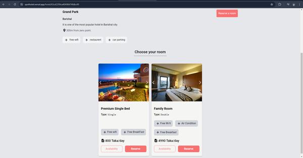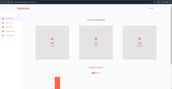message asynctushar about this ad SpotHotel is a full-stack hotel booking platform built with the MERN stack. It provides real-time room availability tracking, a secure Stripe-powered payment system, and personalized customer profiles. The platform also includes an admin dashboard to manage hotels, rooms, bookings, and users, making it a comprehensive solution for both customers and hotel managers. With a modern UI powered by MUI and Tailwind, it ensures a smooth and responsive experience across devices. |